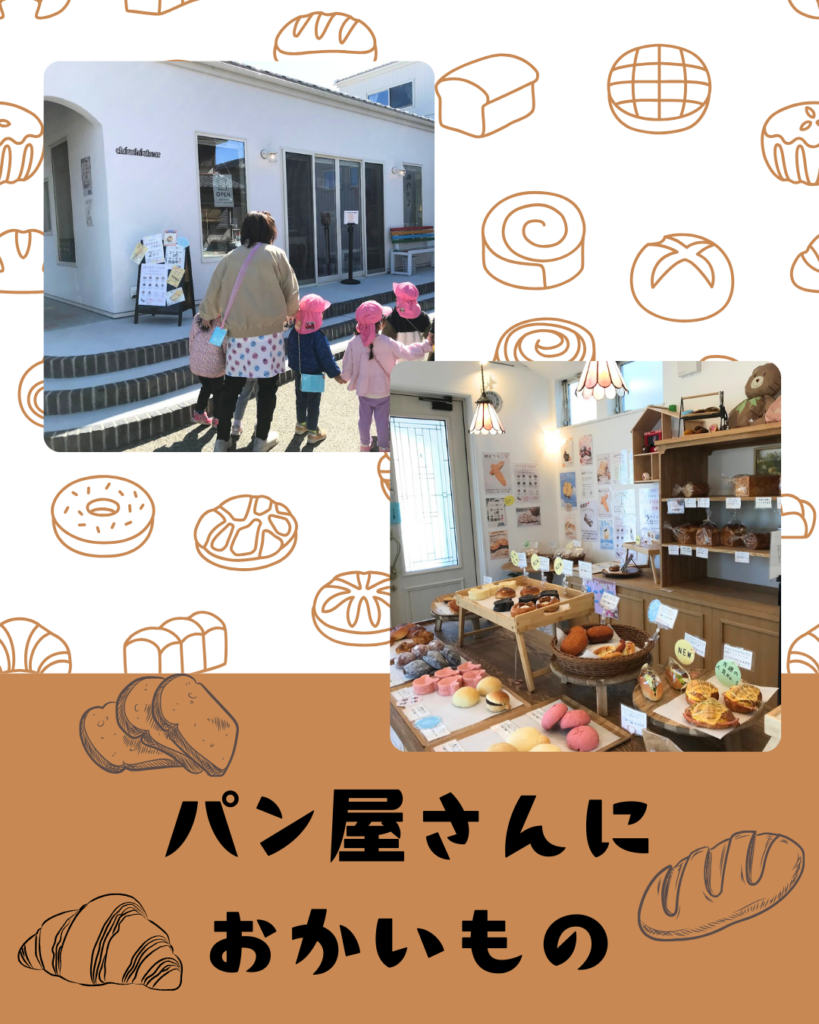 「お店屋さんごっこ」が大好きなもも組さん♪今日はご近所のパン屋さんに実際にお買い物に出かけましたよ💕